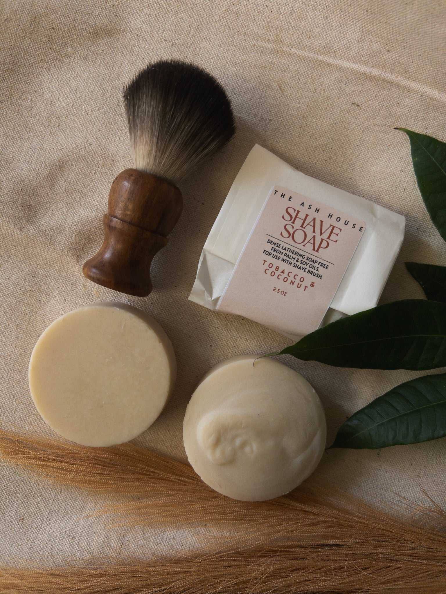 A shave soap formulated without palm derived ingredients (a rare commodity!) or soy. We use what is called a dual lye formula that creates a thick dense lather great for shaving whichever body part you choose (not just for beards!)
