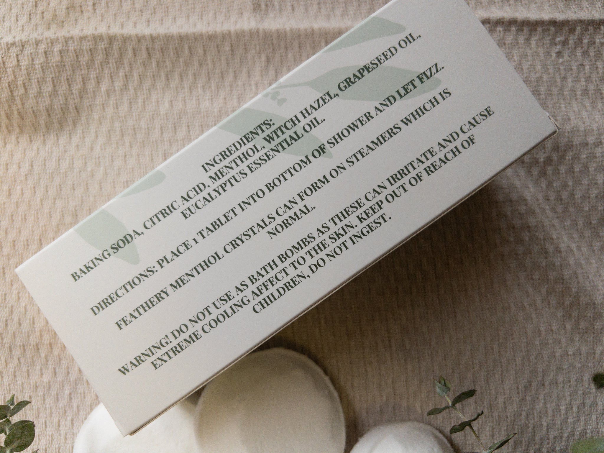 Baking Soda, Citric Acid, Menthol Crystals, Eucalyptus Essential Oil, Witch Hazel, Grapeseed Oil.