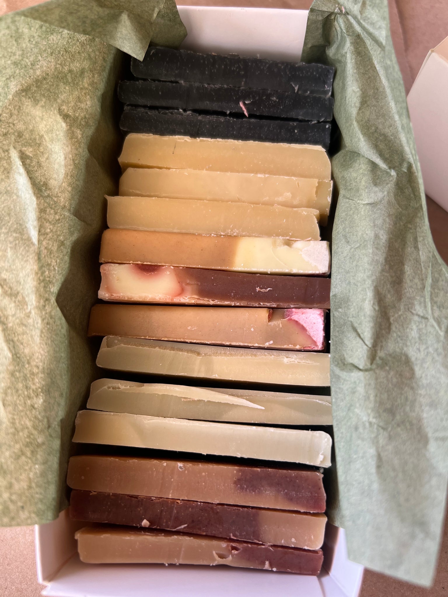 Having guests stay for the holidays? These boxes are an assortment of 5 of our holiday scents, cut into small pieces that are perfect for a week or so of use! Each set is packed into slide out boxes for easy display and storage.