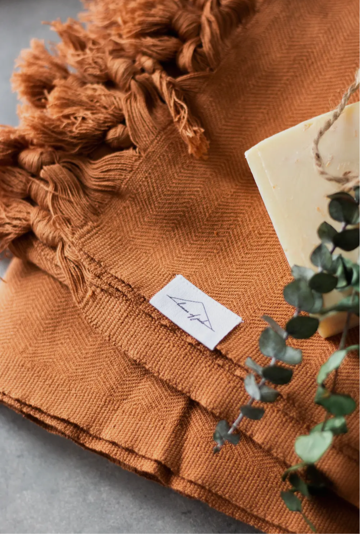 100% Turkish Cotton towels from House of Jude. These generously sizes hand and bath towels are super soft, absorbent, and quick drying. The bath towels also make a great blanket or blanket scarf!